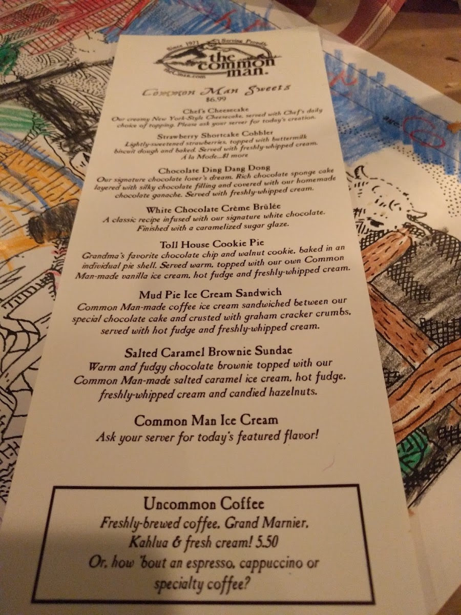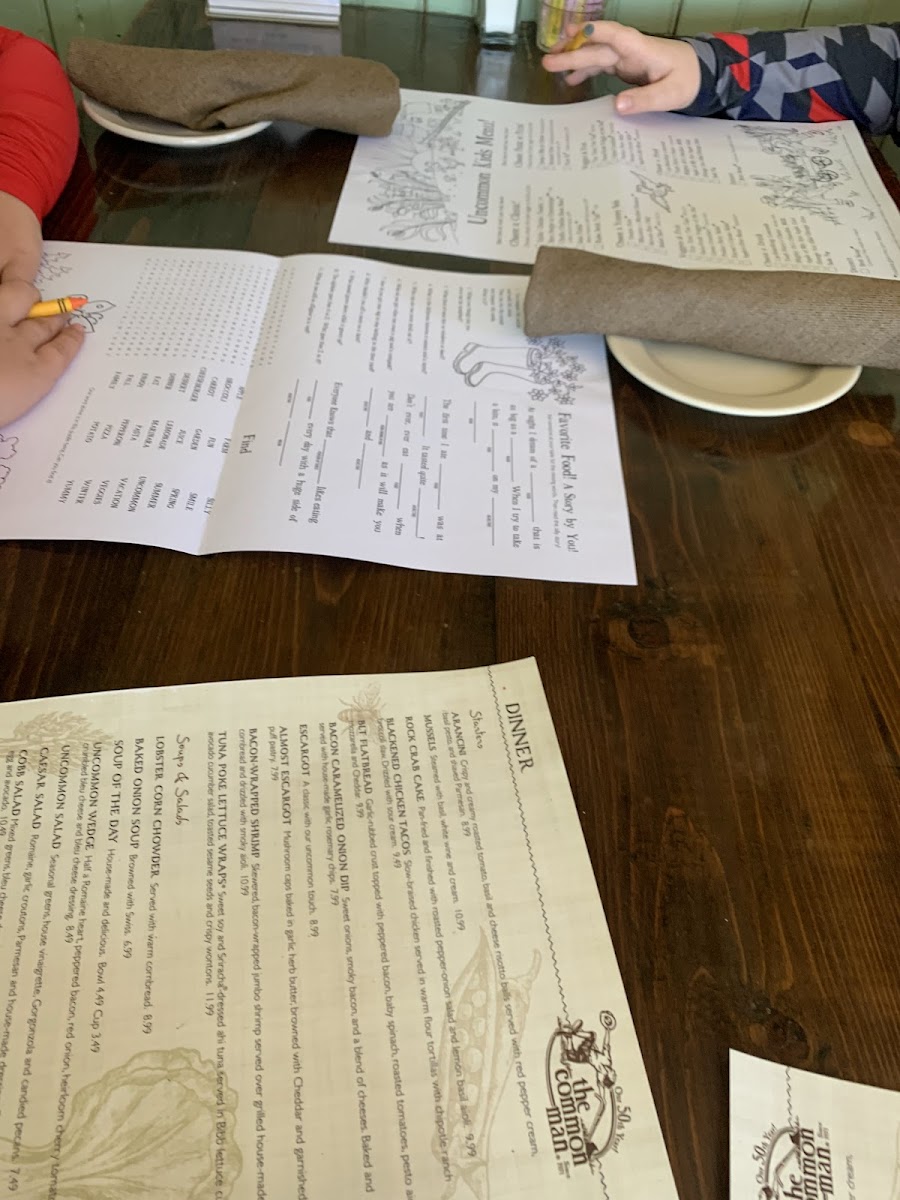 This inviting menu matches the warm and casual atmosphere of The Common Man, where generous portions and familiar flavors help create a comfortable setting for enjoying everyday moments, whether you’re warming up after time outside or settling in to unwind.
